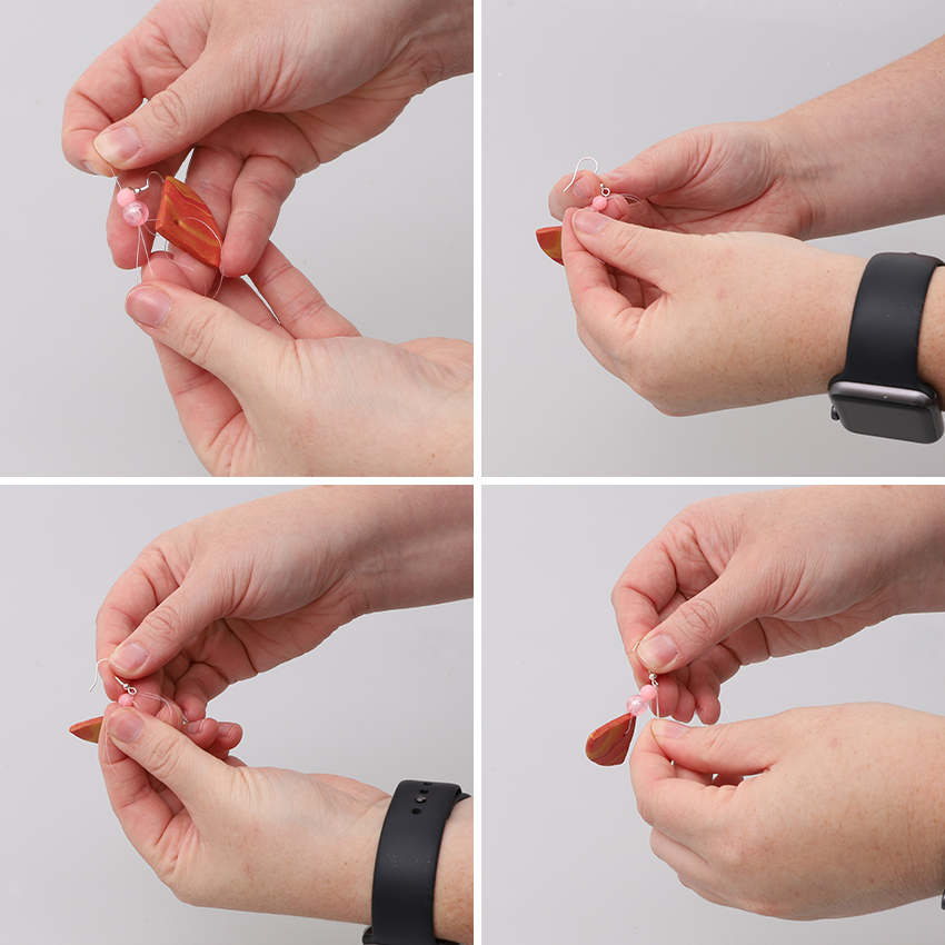 • Step 1010. Repeat steps 7-9 for the other earring. You can even make a second pair of earrings with the remaining clay shapes. You can make identical earrings or change the beads to create a new design!