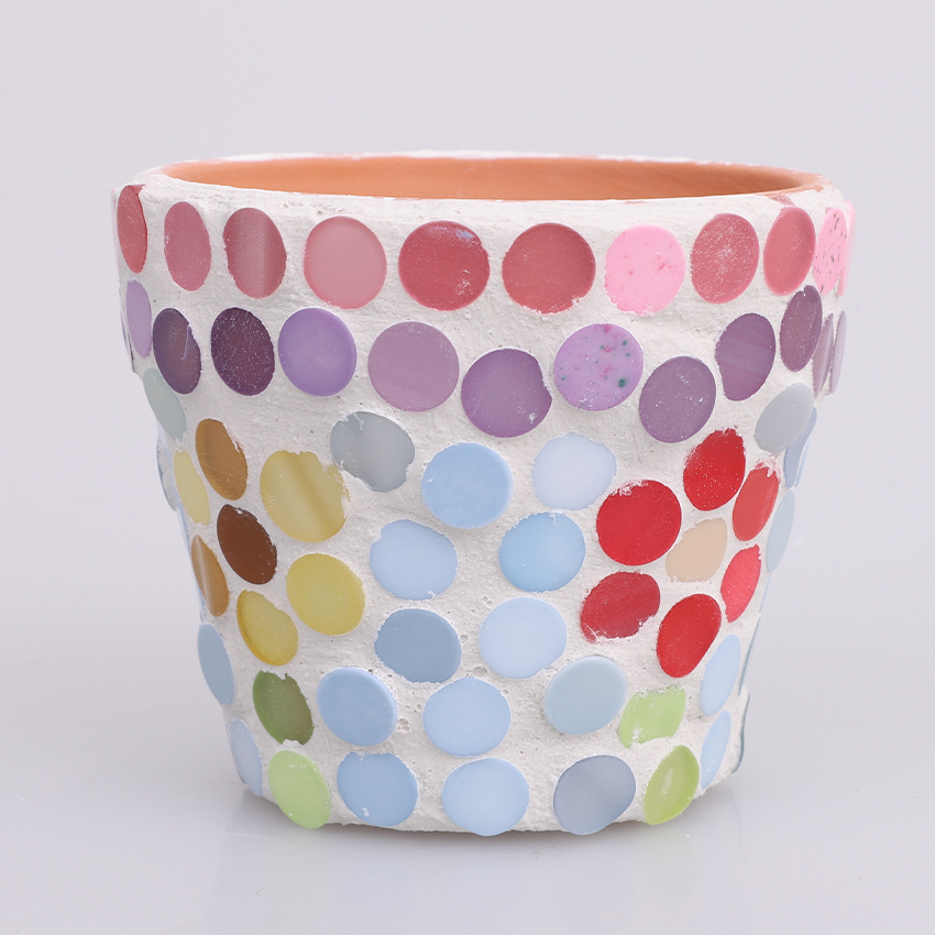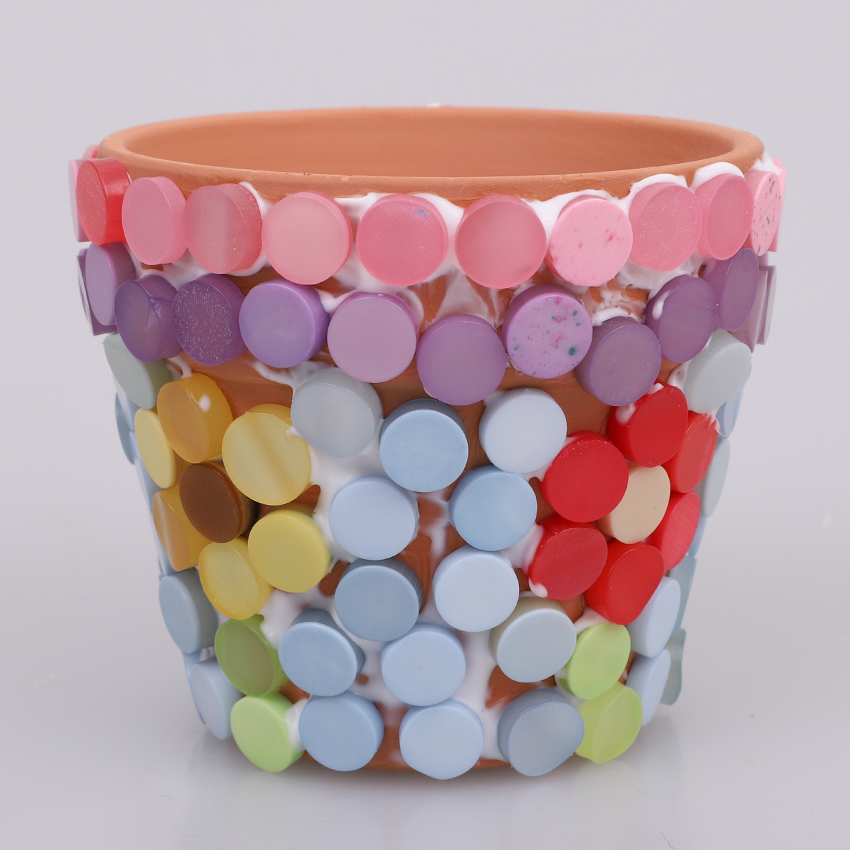 Design a colourful flowerpot using mosaic stones for someone special this Mother’s Day!