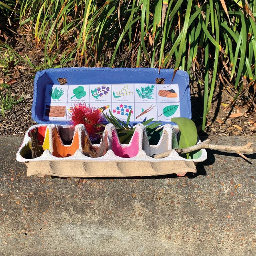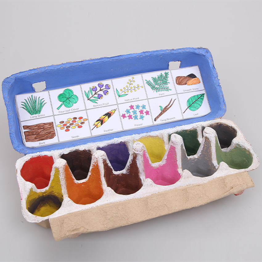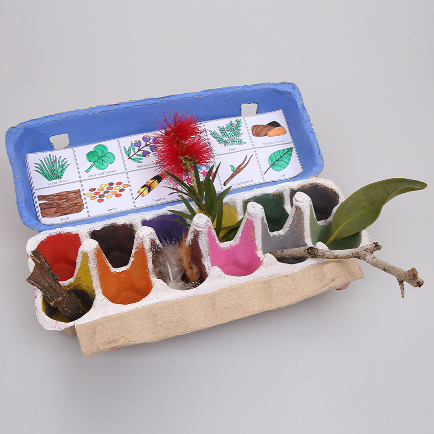 • Step 5Your egg carton is now ready to start collecting all the items for your Scavenger Hunt! Make sure you ask for adult permission and assistance before venturing outside and collecting any items!