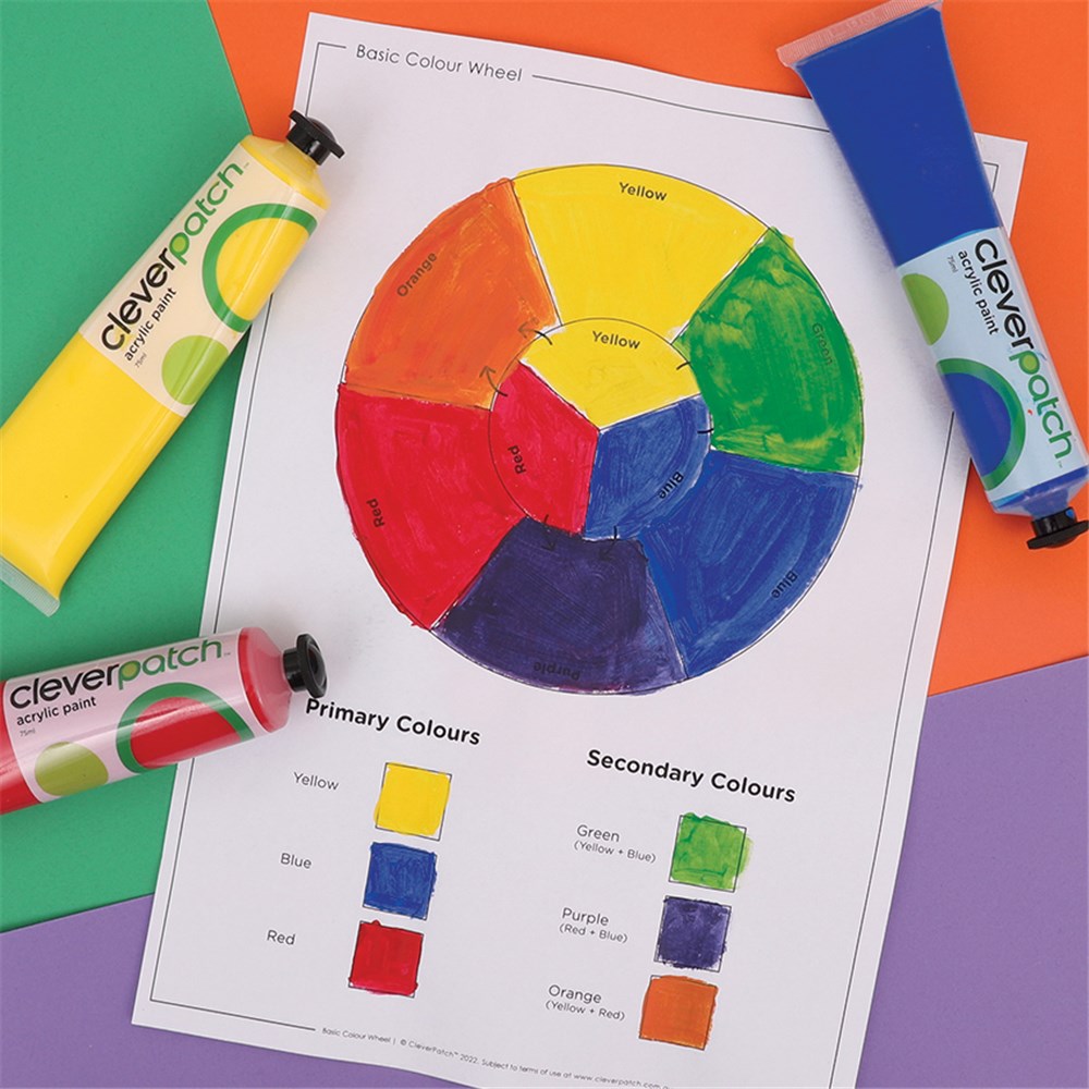 The colour wheel is a great way to see how different colours are made. By mixing combinations of primary colours, we can create secondary colours!