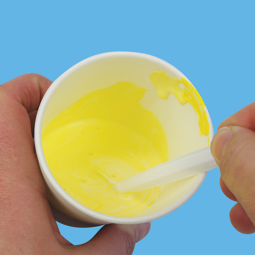 • Step 1Add one-part gloss finish to a paper cup. We are using approximately 1/3 of a paper cup.