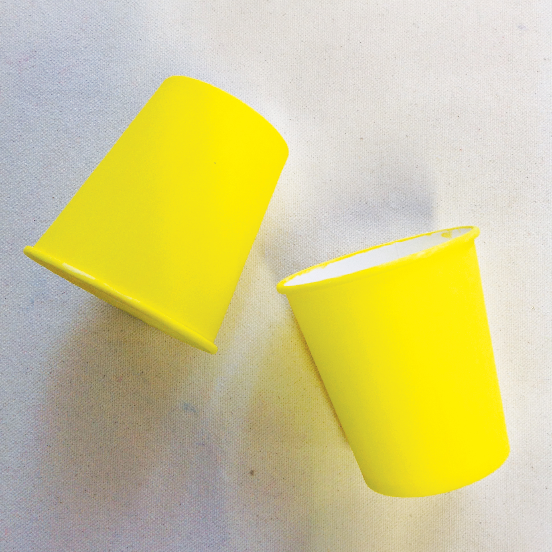 • Step 1 Paint two paper cups yellow. Allow to dry.