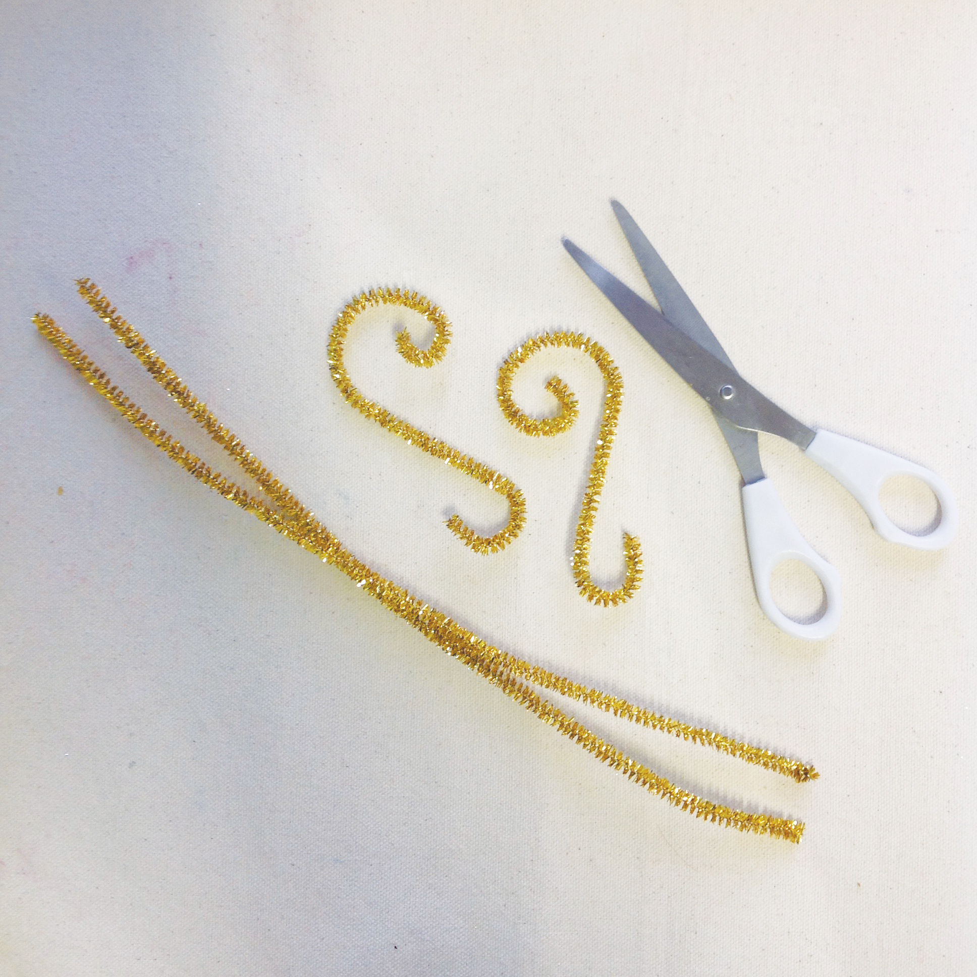 • Step 3 Cut a chenille stem in half and bend to create two handles.