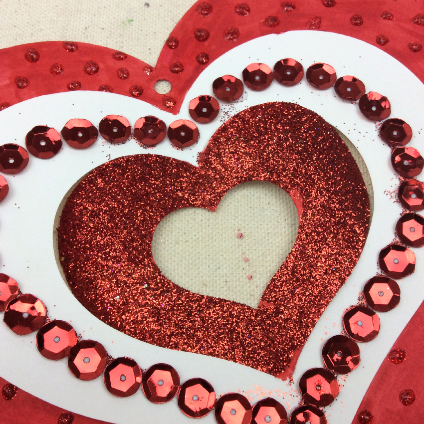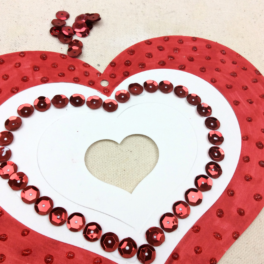 • Step 2Use PVA glue to attach sequins onto the middle heart. Allow to dry then repeat on the opposite side.
