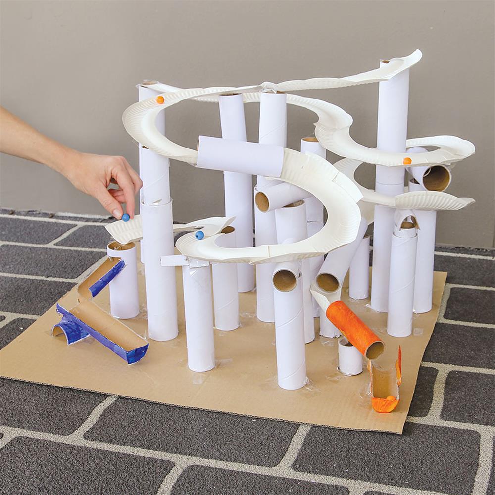 Experiment with the heights and distances between your roller coaster pillars in order to keep the bead on the right track or how about colour coding your tunnels and seeing if you can send the bead down the correct path!