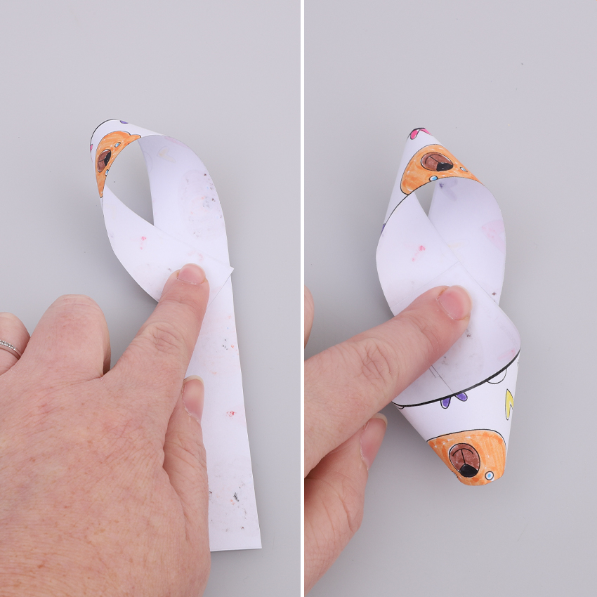 • Step 7Glue the ends of the short strip together to form a single loop. Glue at an angle, in the centre of the crosses. Allow to dry.
