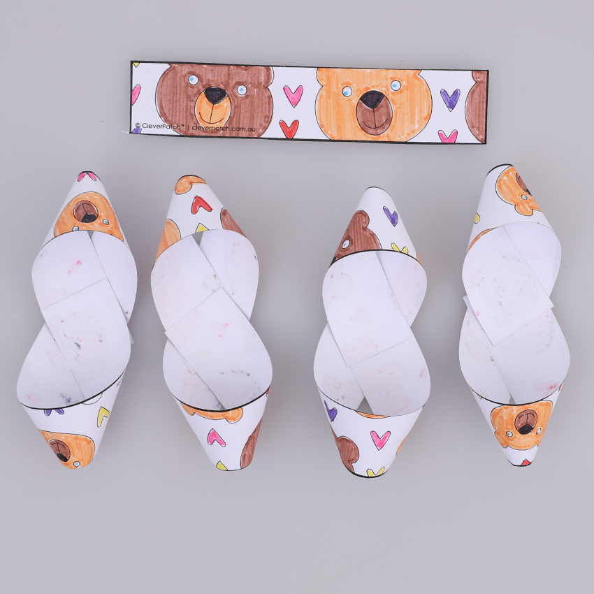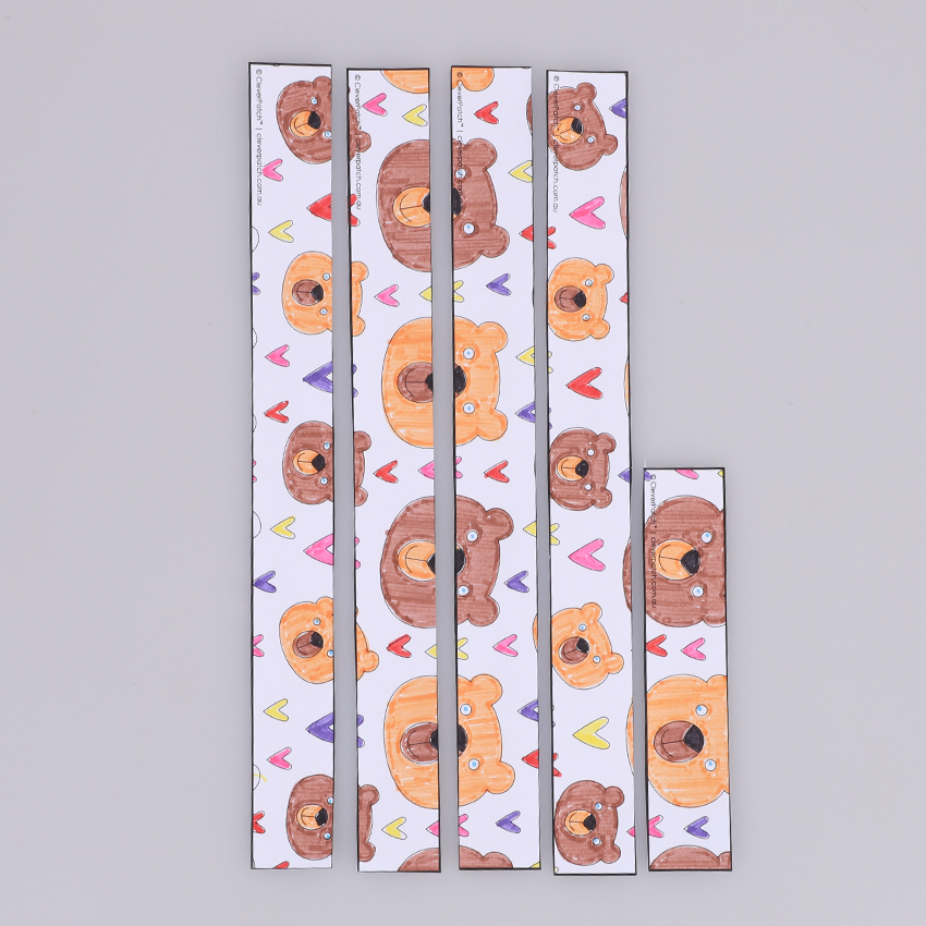 • Step 2Cut out the five paper strips from the first page of the templates. There are four longer strips and one shorter strip. Adult supervision is recommended when using scissors.