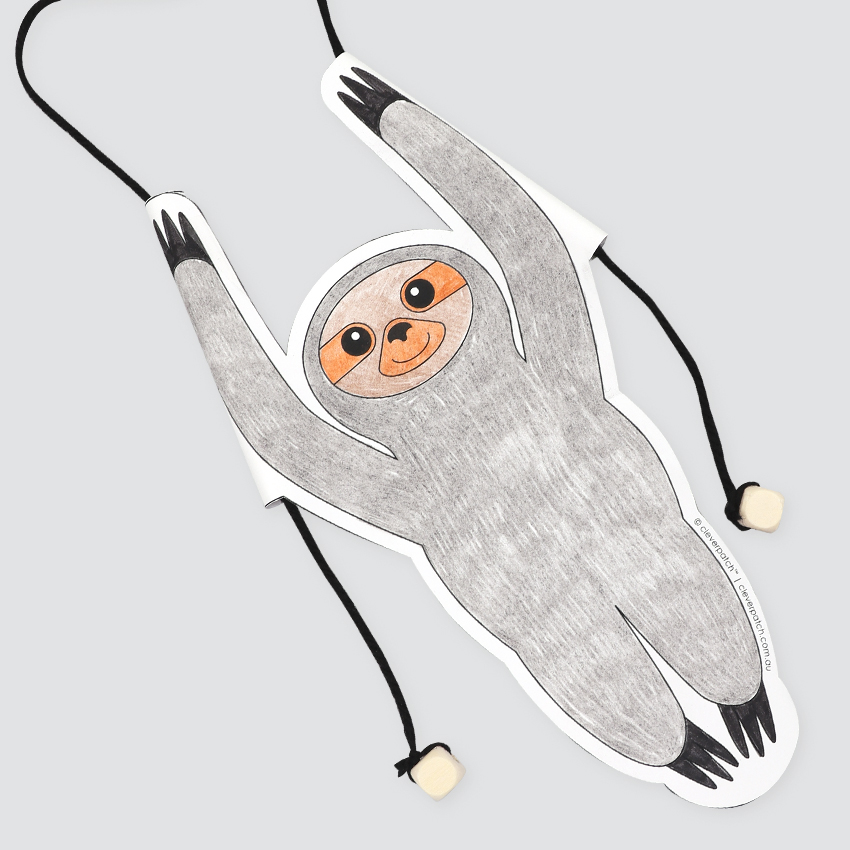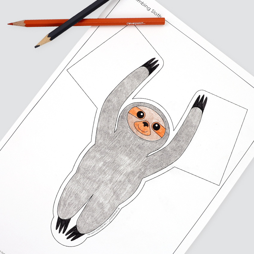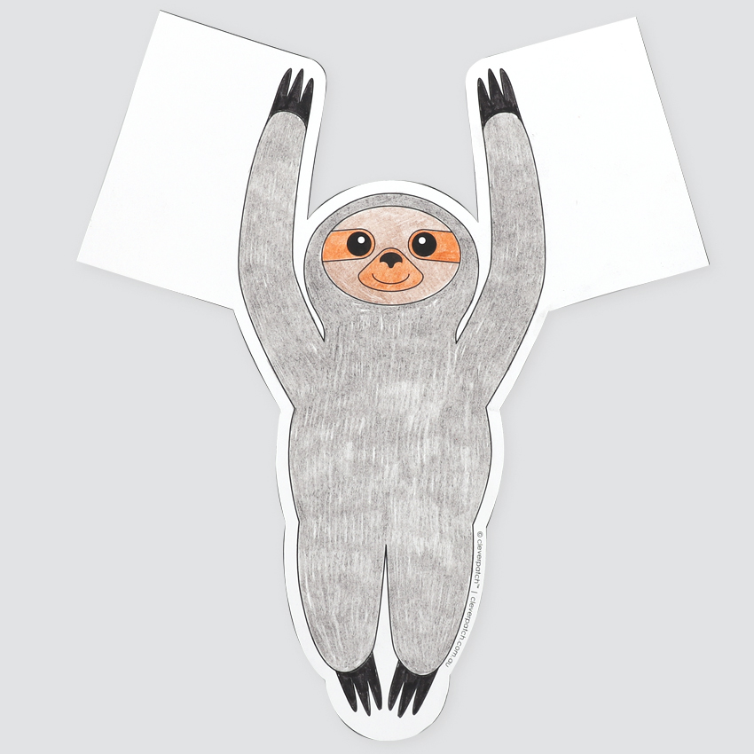 • Step 1Download and print the provided sloth template. We recommend using cover paper for this activity as it will provide a sturdier surface for construction.