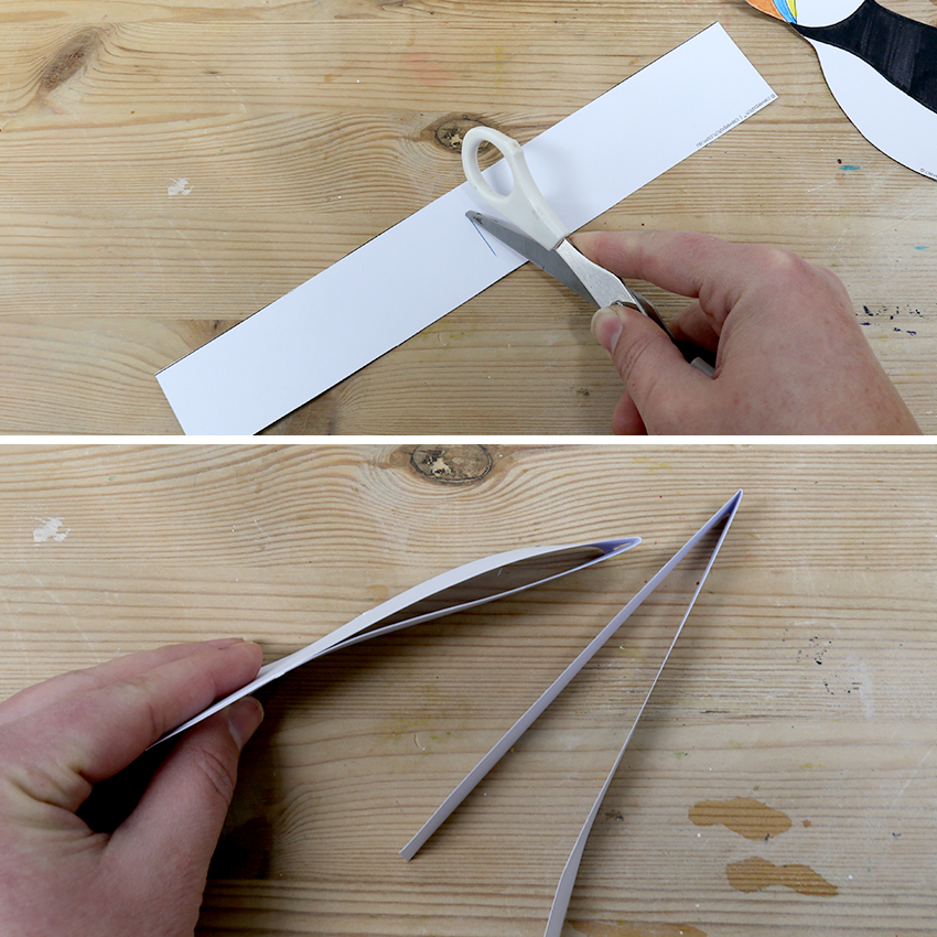• Step 2Use scissors to cut out the template pieces. Adult supervision is recommended when using scissors. We have chosen to draw the Puffin’s features on the other side of the template as well, however this is optional.