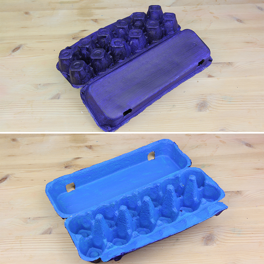 • Step 1Begin by painting your egg carton dark blue on the outside and light blue on the inside. Allow to dry.
