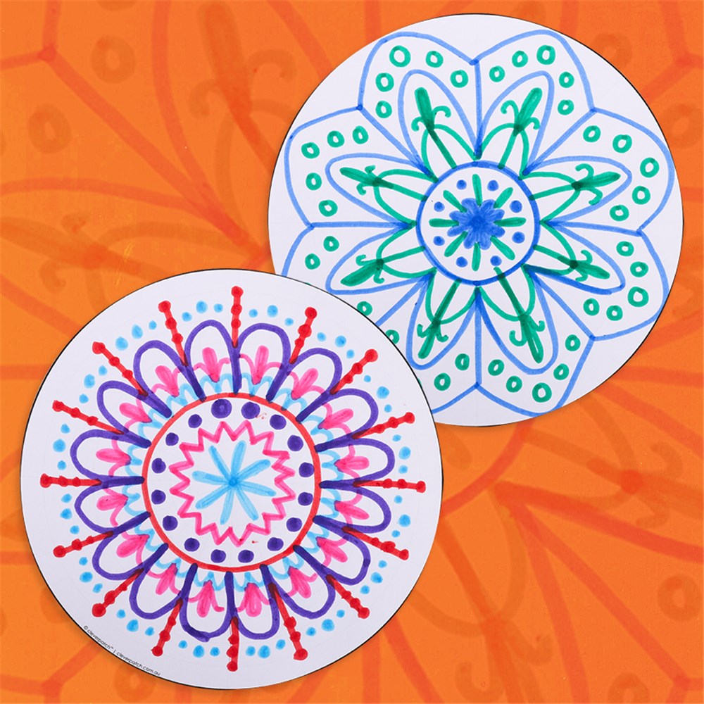 • Step 5Add colour to your mandala using markers. Cut out your mandala. Adult supervision is recommended when using scissors.