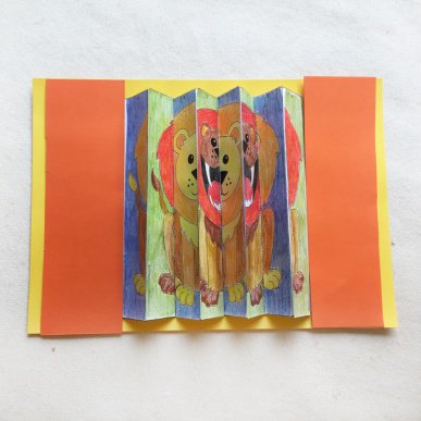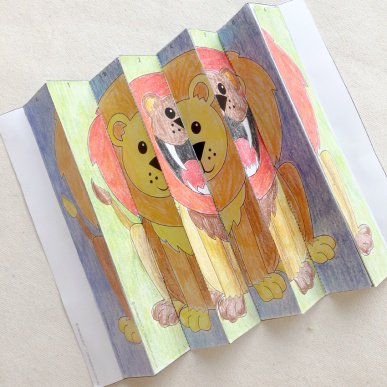 Search terms: optical illusion, kinetic art, STEAM, lion, perception, paper craft, fun, science