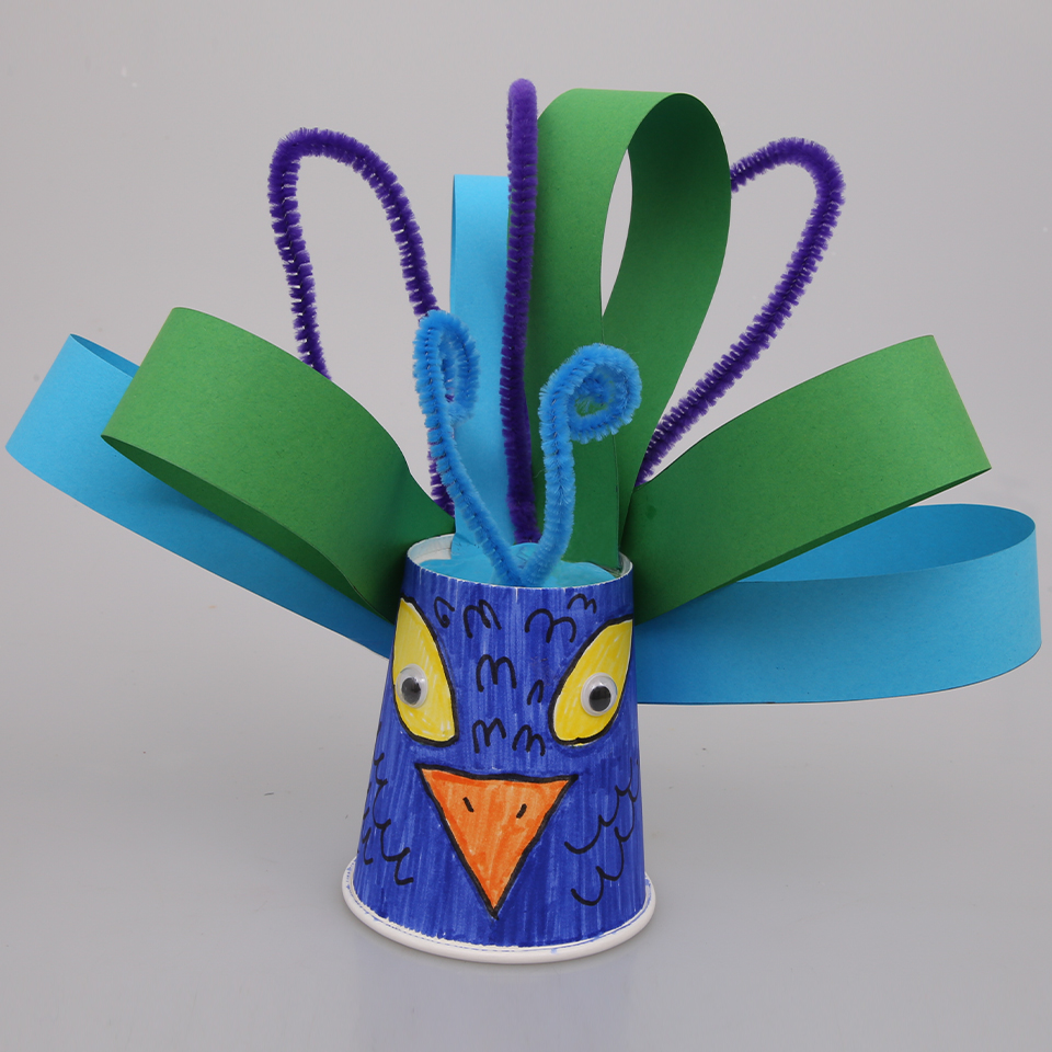 Get creative and make a fun Paper Cup Peacock with chenille stems and paper!
