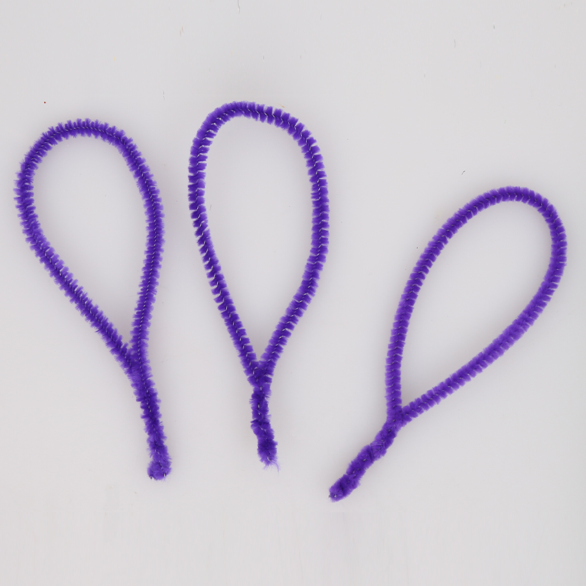 • Step 2Twist the ends of 3 purple chenille stems to create loops, just like the paper ones in step 1.