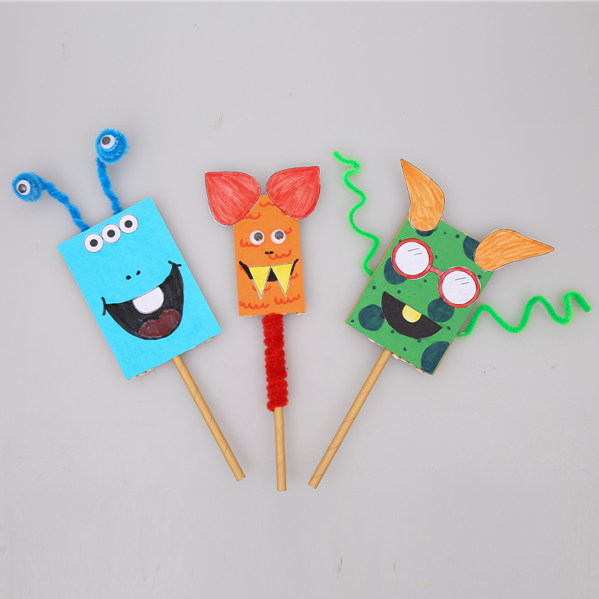 Create a family of paper straw monsters and feature them in your own puppet show!