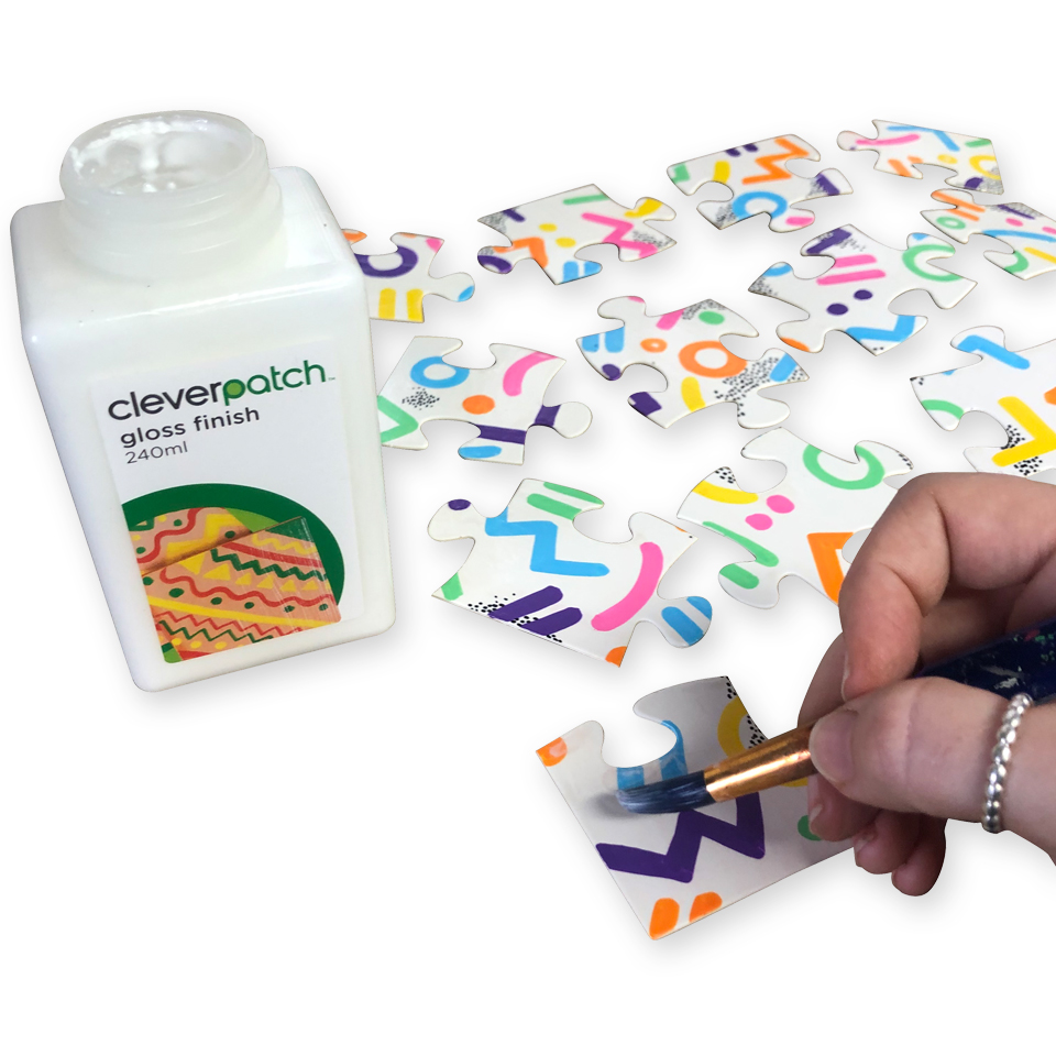 • Step 4Use a glue brush and CleverPatchâ„¢ Gloss Finish to coat the top of each piece. Allow to dry.