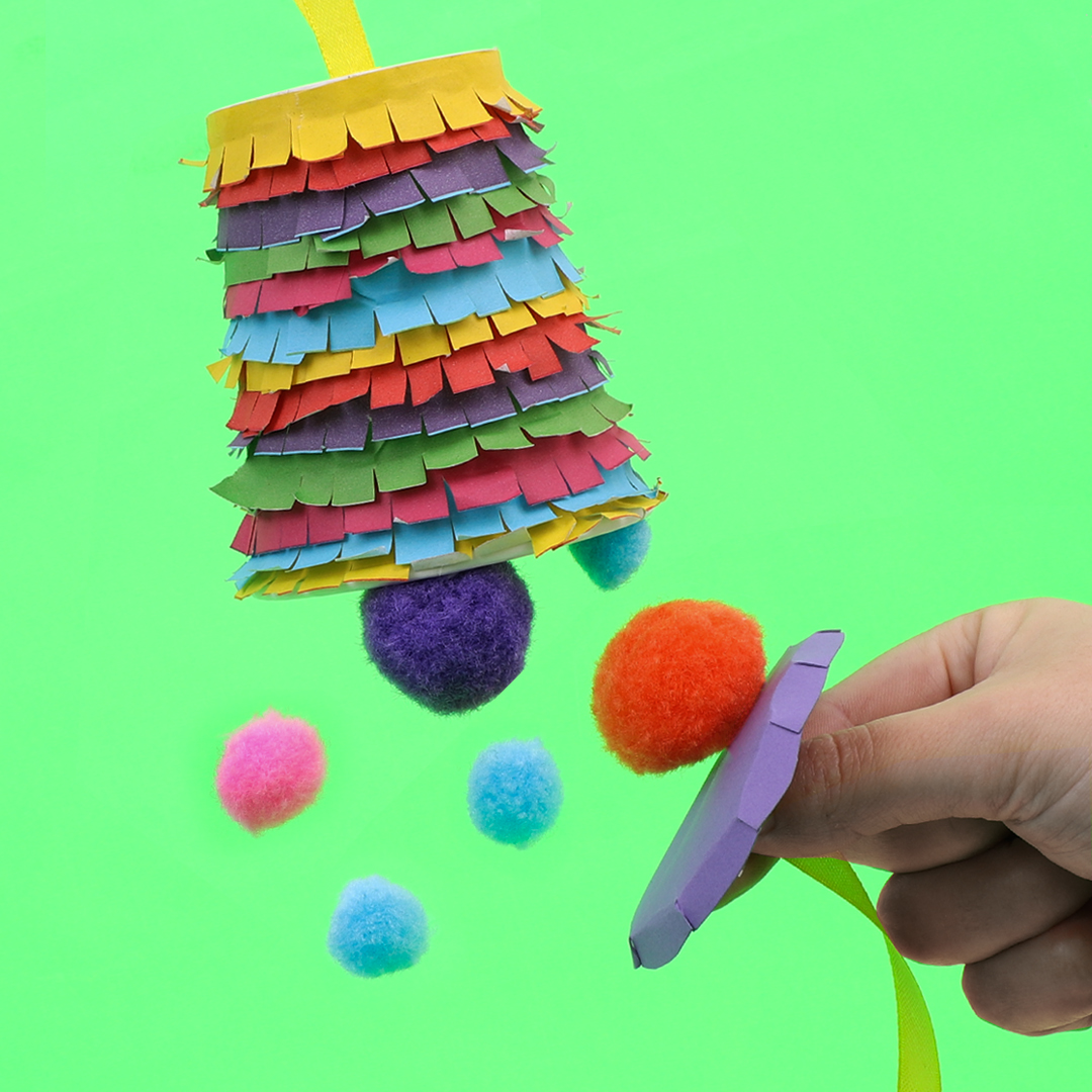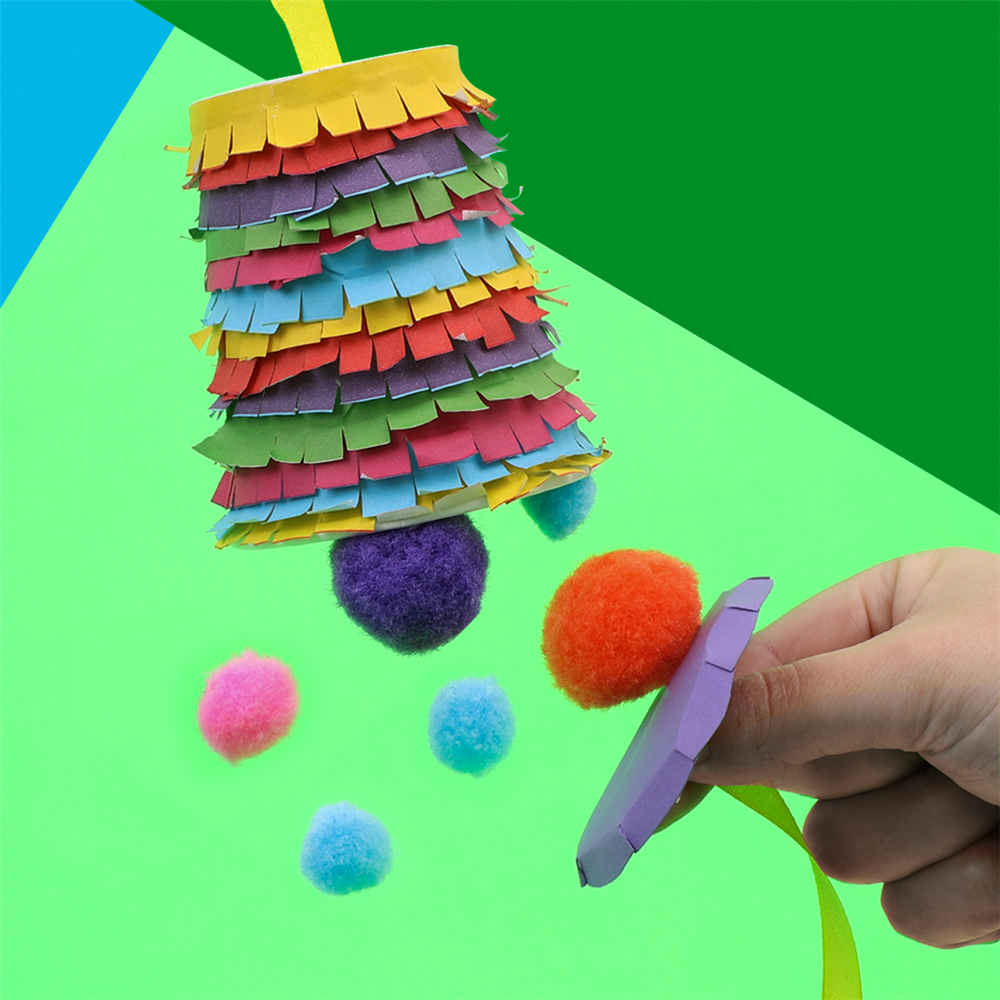 Pull the ribbon to burst open your Pinata Cup! This craft makes a super fun gift bag to surprise your friends and family.