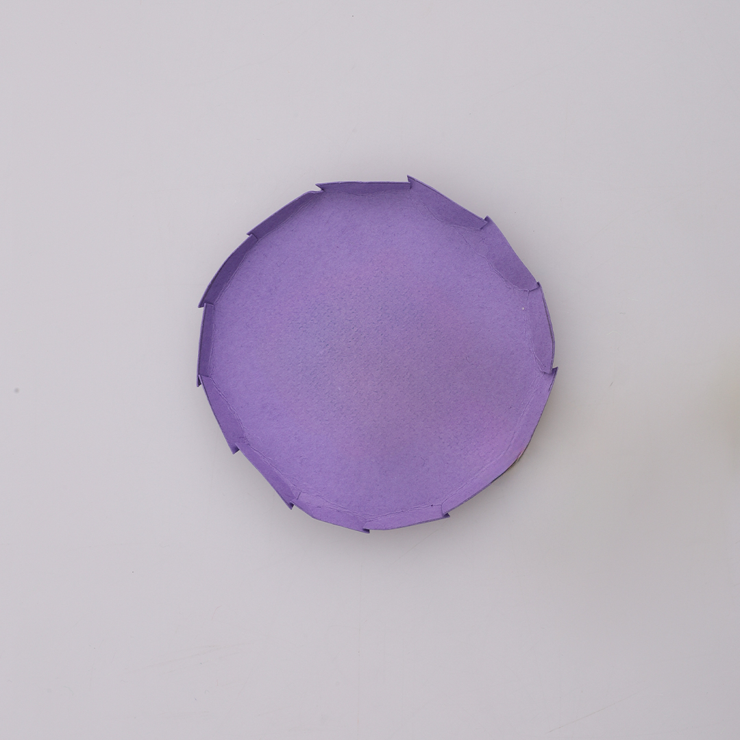 • Step 4Cut small, evenly spaced slits around 5mm long around your cardboard circle about 1cm apart. Fold each tab downwards. This will later fit inside your cup as a fake bottom.