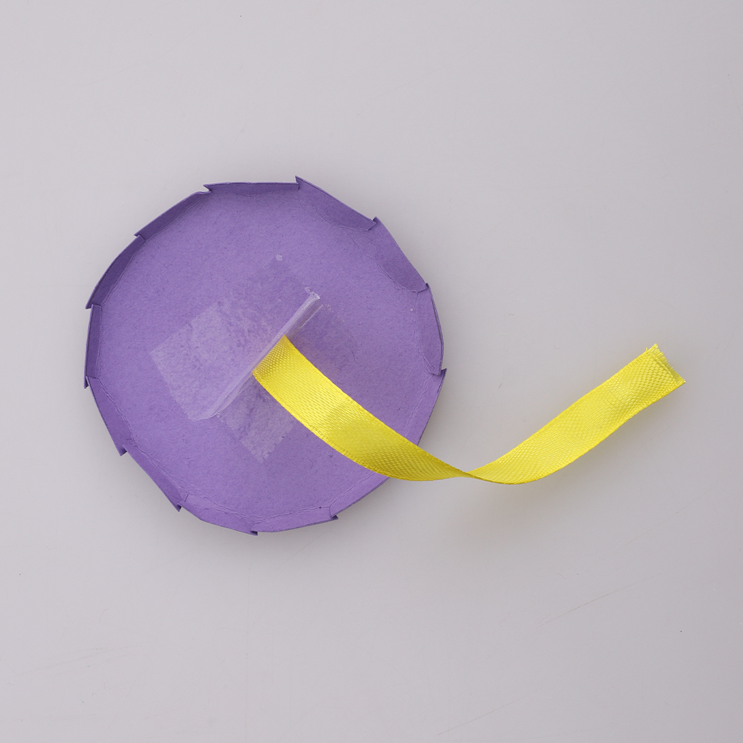 • Step 5Cut 10cm of ribbon and use sticky tape to secure one end to the bottom of your cardboard circle.