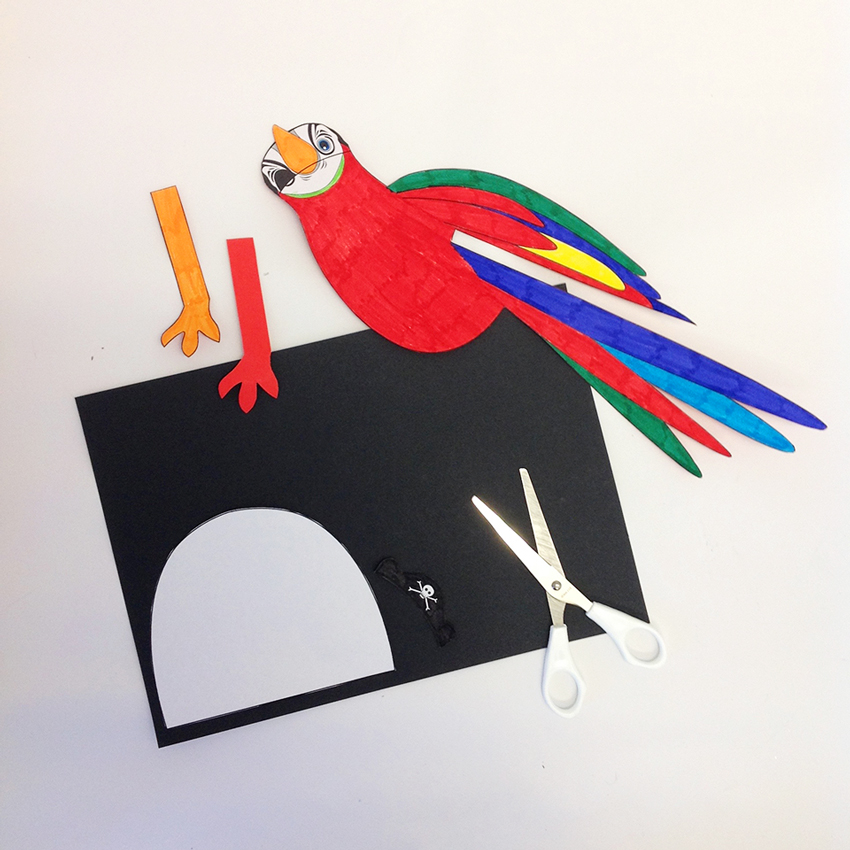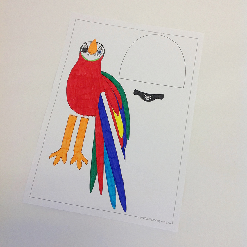 • Step 1Print the template provided onto A3 paper and use CleverPatchâ„¢ coloured markers to decorate your parrot & hat. You can also colour in the shoulder pad, however we are only using it as a template guide on coloured cardboard.