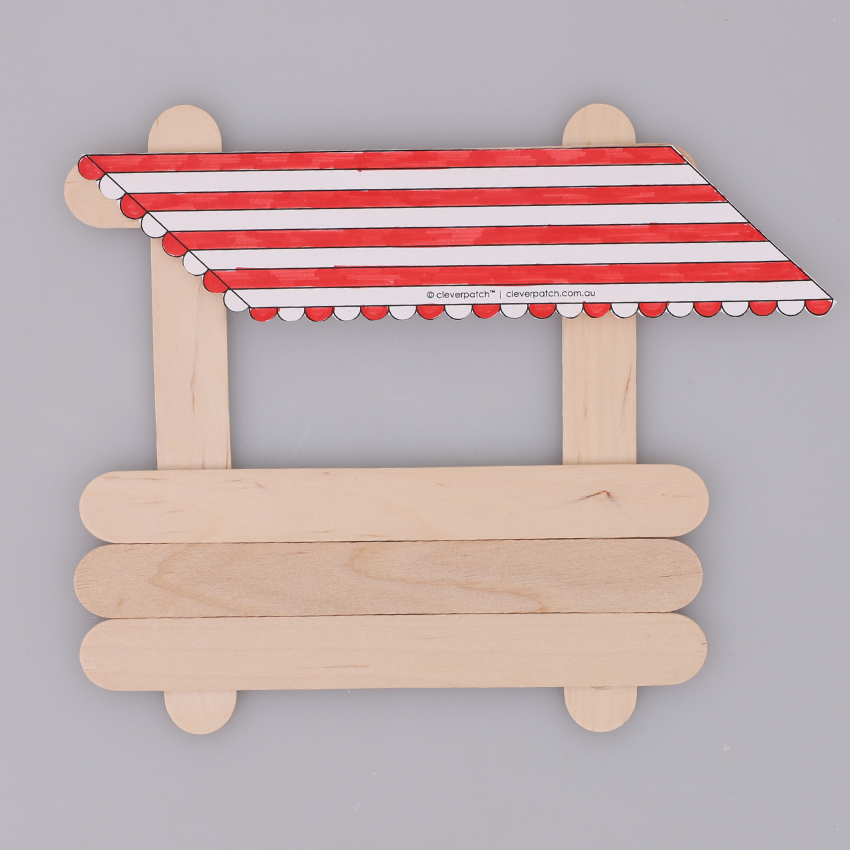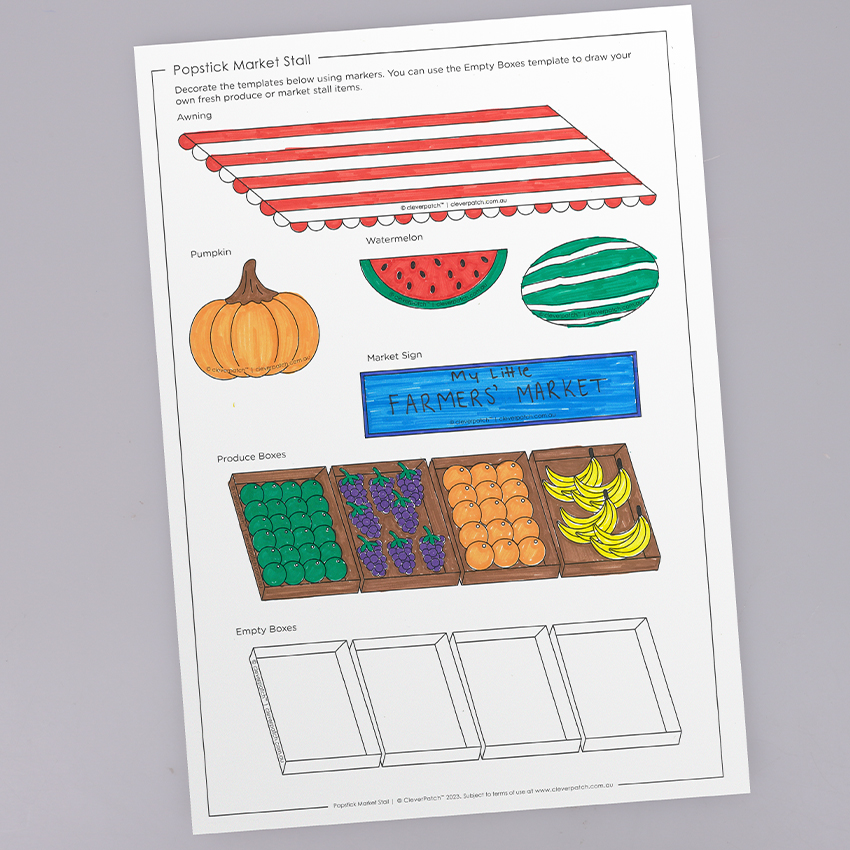 • Step 1Download and print out the market stall template provided. We recommend using cover paper for best results when decorating.