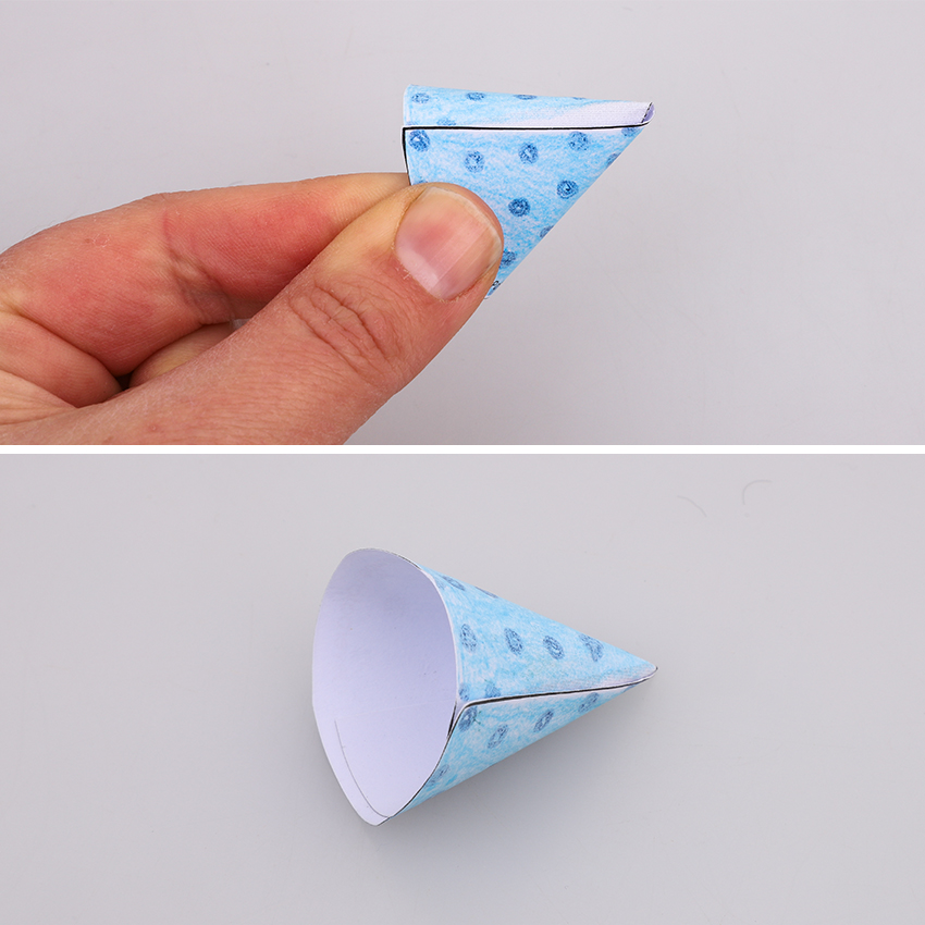 • Step 9Take the final template piece and bring the ends together, overlapping them to create a cone shape. Add glue to the tab and press together to hold in place. Allow to dry. This will be the quokka’s party hat!