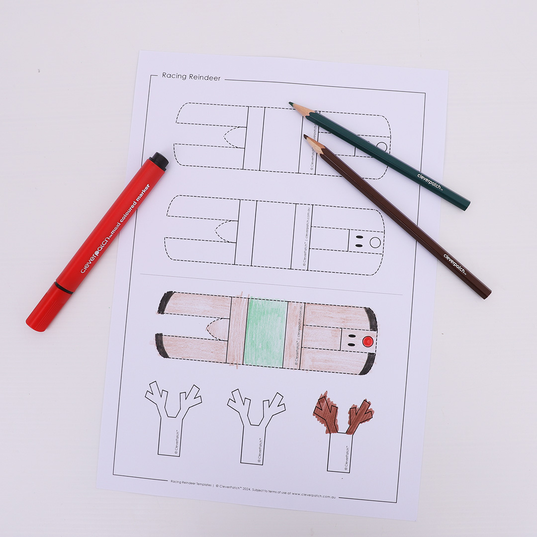 • Step 1Download and print out the template provided onto cover paper. Decorate your reindeer using coloured pencils.