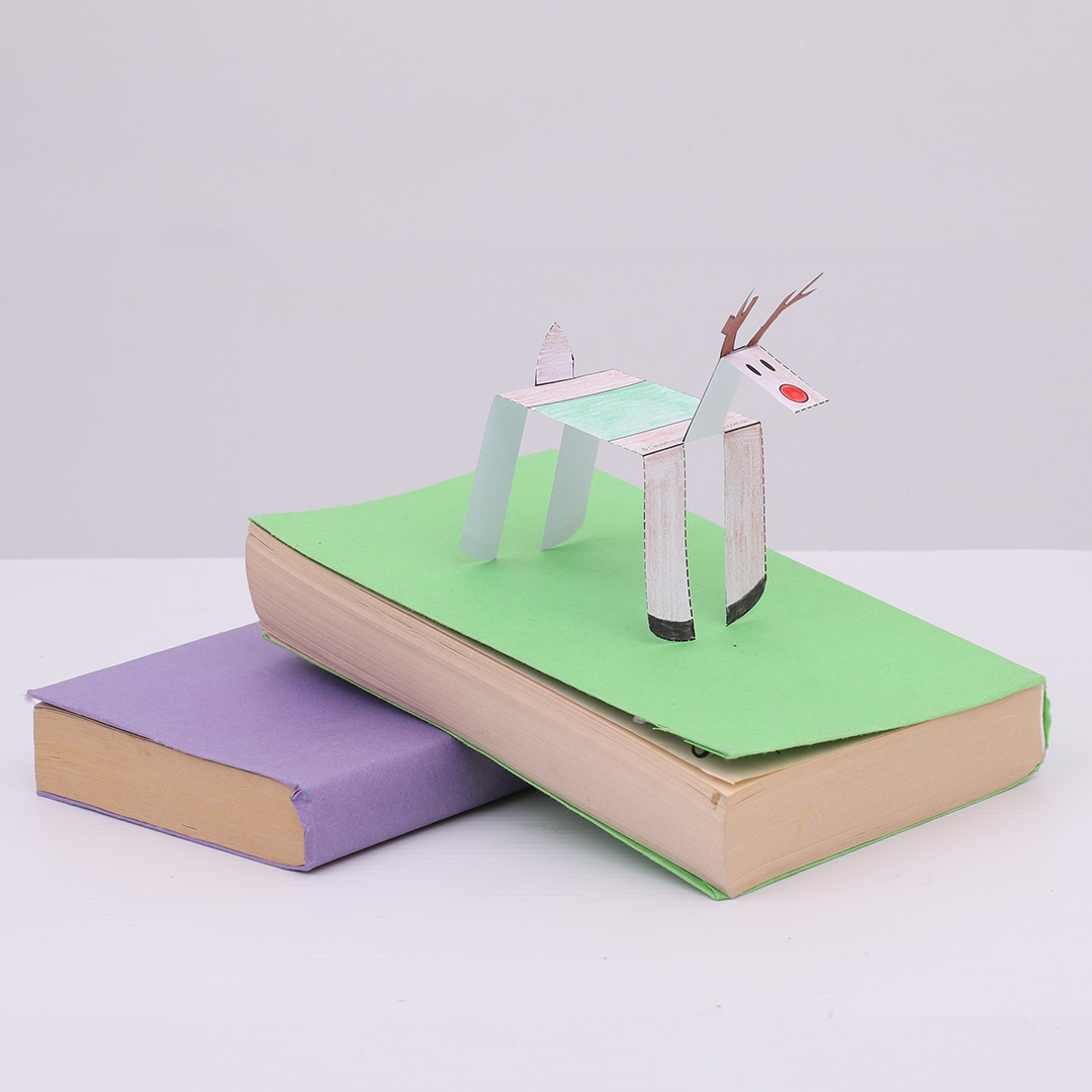 • Step 7Set up a flat track for your reindeer with a slight incline. This can be done by placing a thick book underneath one half of another book, as shown.