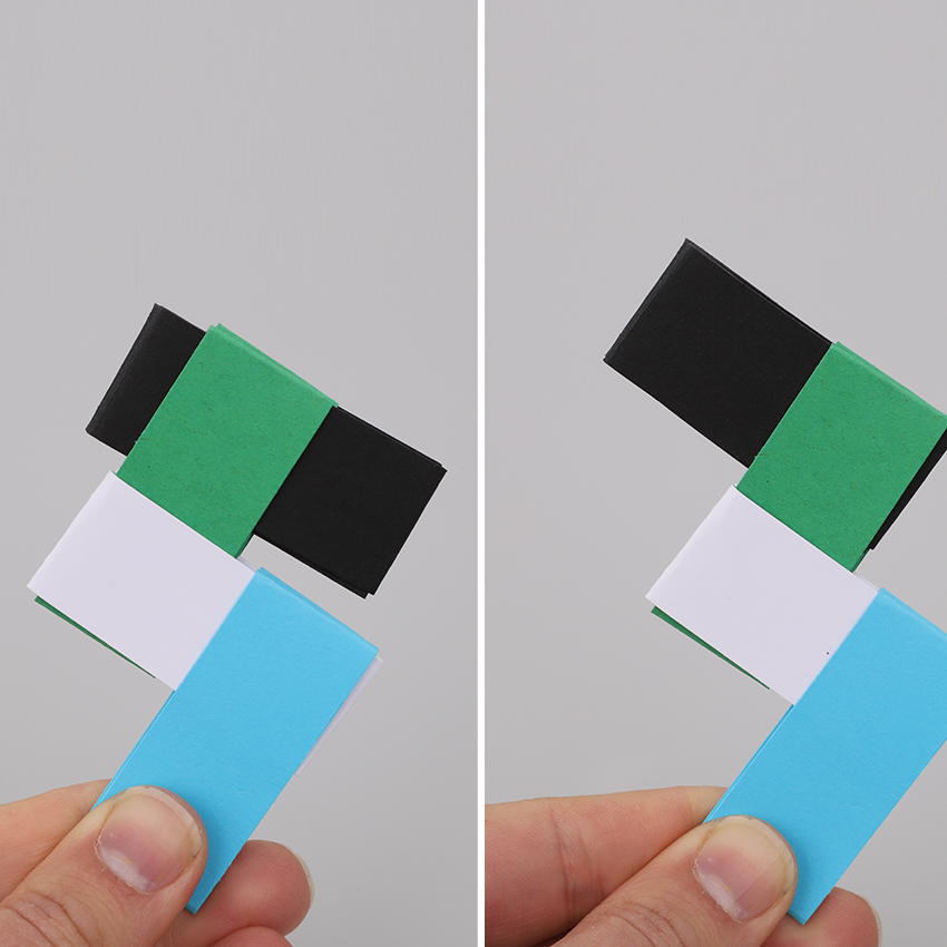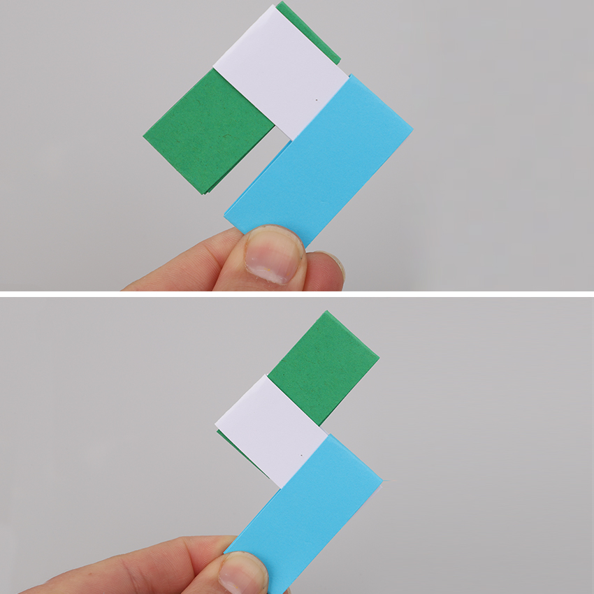 • Step 6Take a third piece and push the open ends through the open ends of the second piece, sliding it all the way through from left to right as shown.