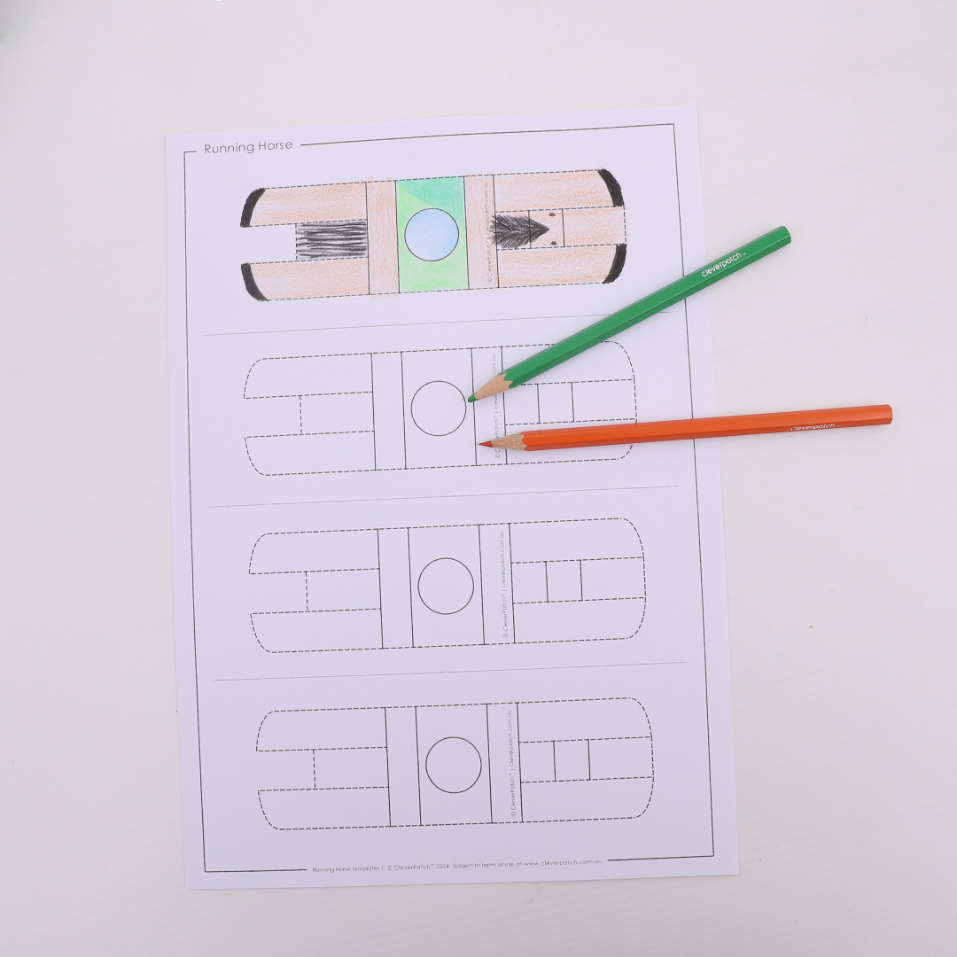 • Step 1Download and print out the template provided onto cover paper. Decorate your horse using coloured pencils or markers.