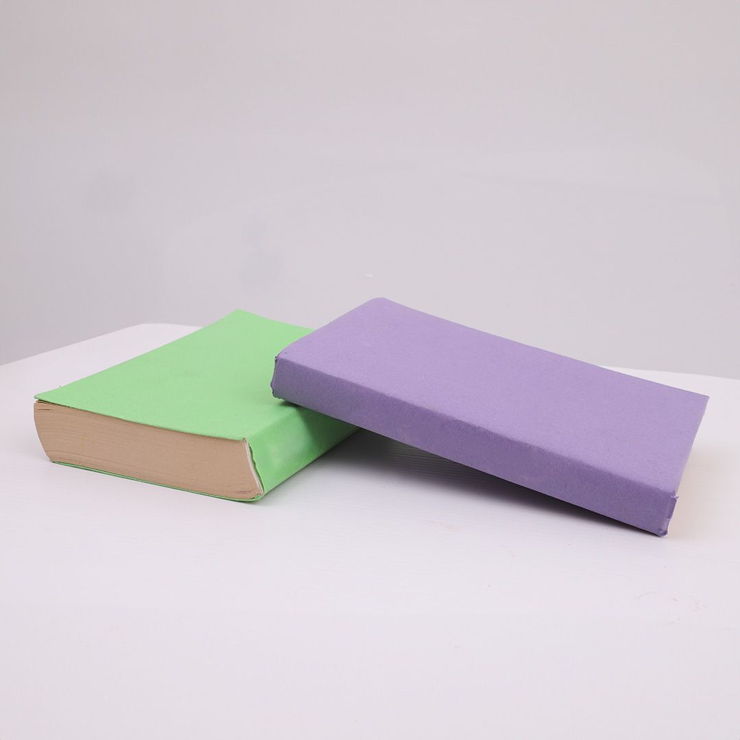 • Step 6Set up a flat track for your horse with a slight incline. This can be done by placing a thick book underneath one half of another book, as shown.