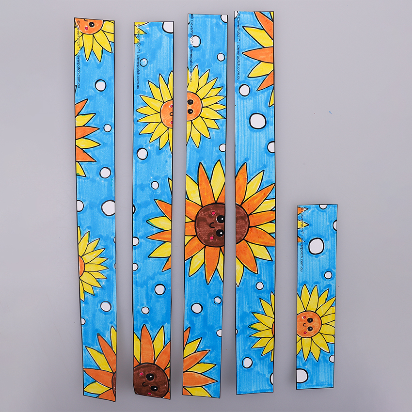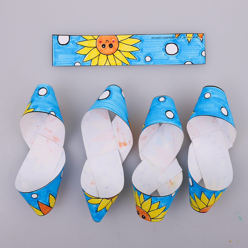 • Step 2Cut out the five paper strips from the first page of the templates. There are four longer strips and one shorter strip. Adult supervision is recommended when using scissors.