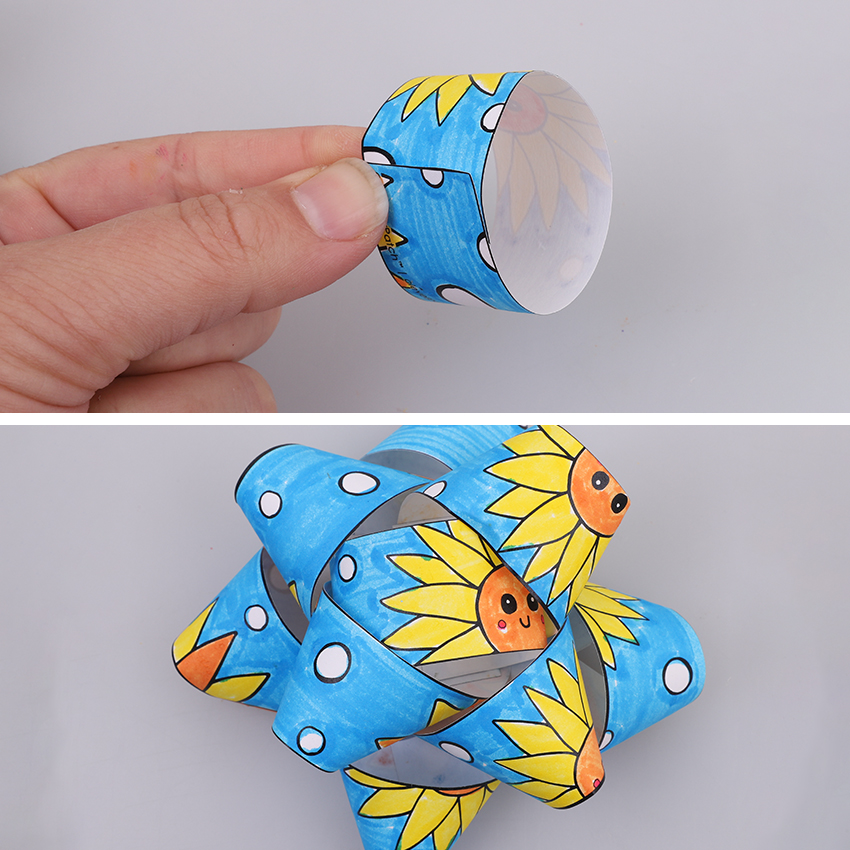 • Step 7Glue the ends of the short strip together to form a single loop. Glue at an angle, in the centre of the crosses. Allow to dry.