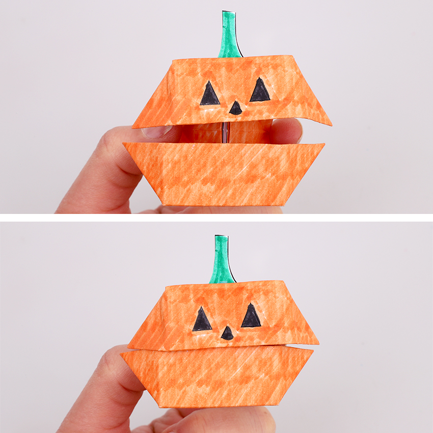 • Step 11As you pinch and release your fingers the jack-o’-lantern’s mouth will open and close!
