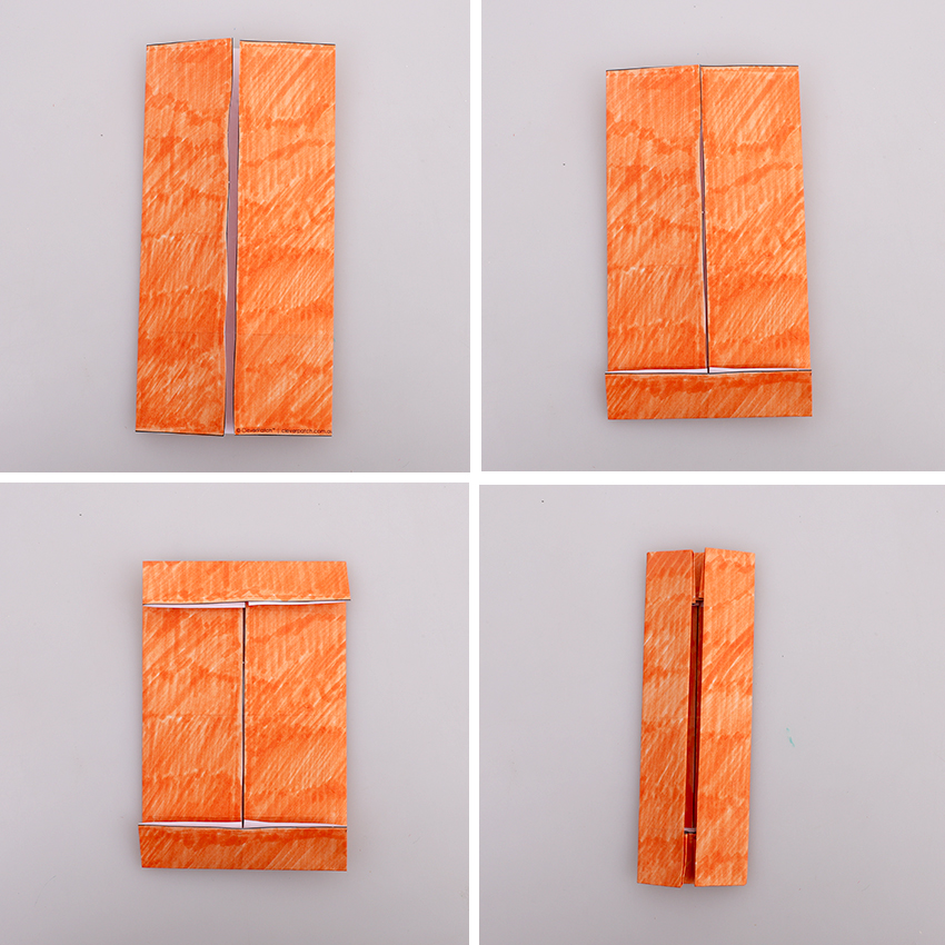 • Step 4Turn the paper 90 degrees so it is now running vertically. Fold the bottom edge up to the first horizontal fold line from the bottom and crease. Fold the top edge down to the first horizontal fold line from the top and crease. Fold the left and right edges into the middle line and crease.