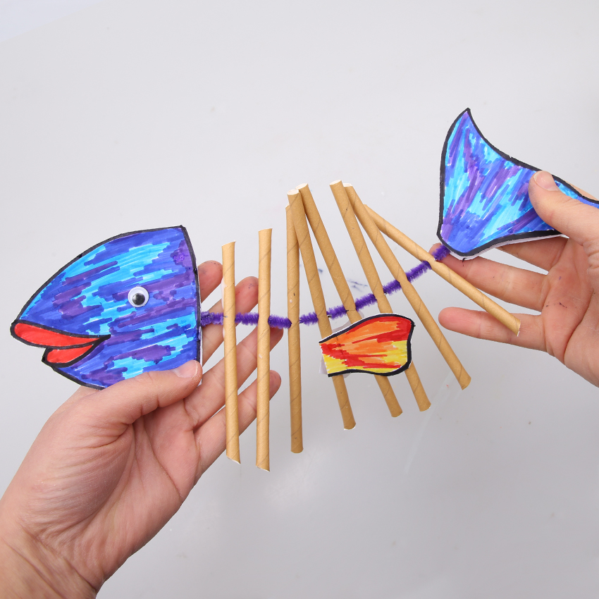 1 fish. 2 fish. Red fish. Blue fish! Create a fishbone friend using straws, paper and chenille stems!