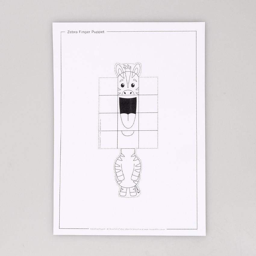 Did you know a group of zebras is called a dazzle? Who knew!? This cute zebra puppet uses our template and some basic origami folds to get your fingers moving.