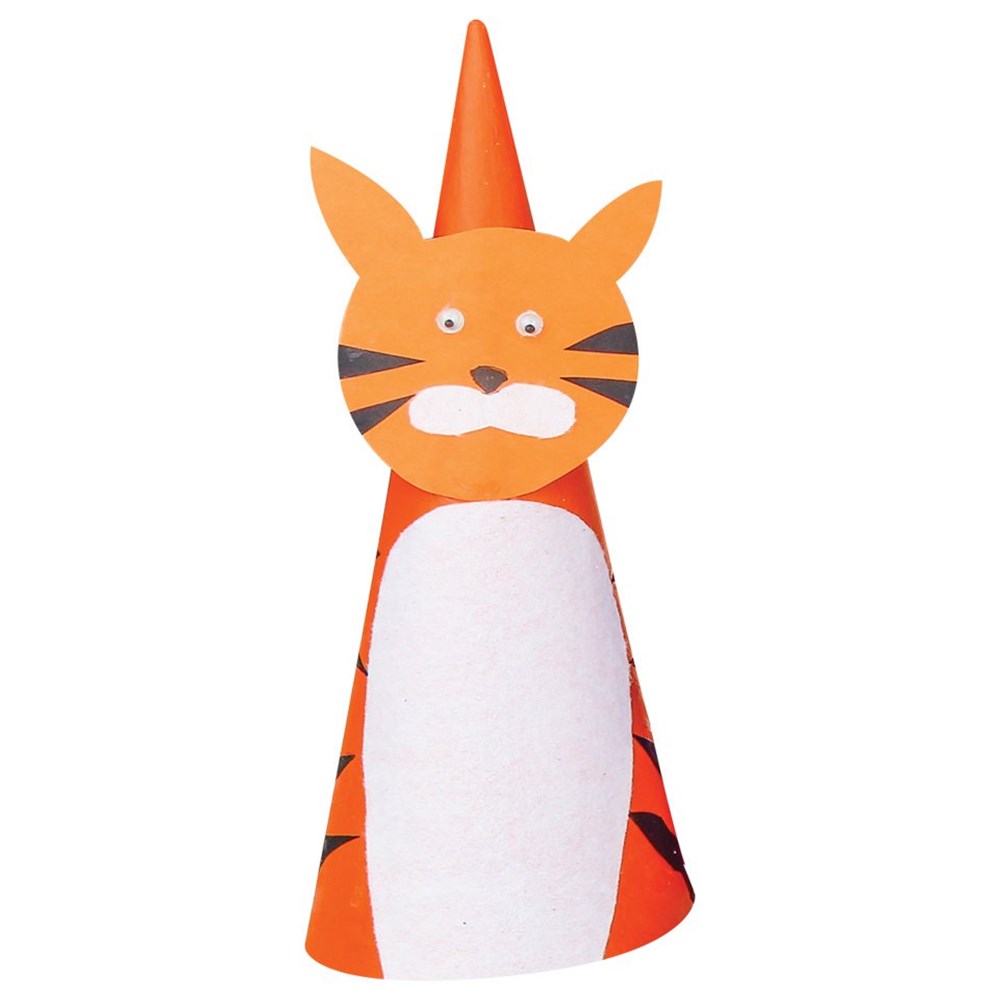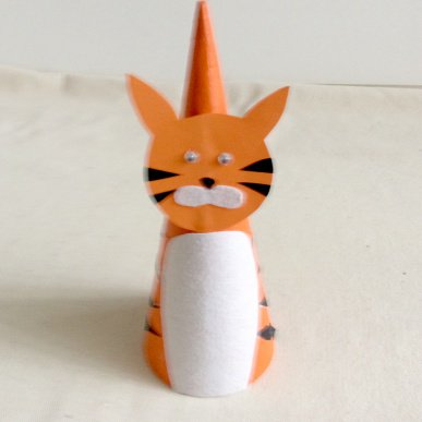 This cone tiger is not as ferocious as you'd think! You might like to make other cone animals and create a whole zoo!