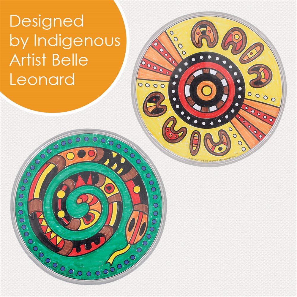 These templates designed by Indigenous Artist Belle Leonard are perfect to show some Indigenous culture in your Design Your Own Coasters. Simply print, decorate, and insert your chosen template into your coaster.