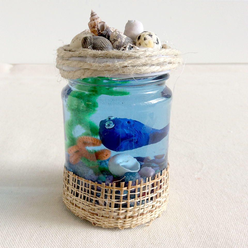 Splish, splash! Take a trip to the seaside with this beachy fish bowl jar.
