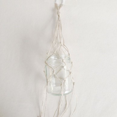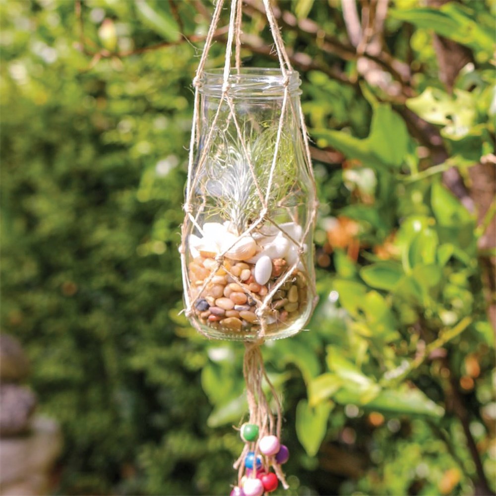 Macrame is all the rage these days. All the kids are doing it. It's simple, effective and looks amazing. Once you have created your hanging jar you can fill it with anything you like. We turned ours into a terrarium style air plant holder!