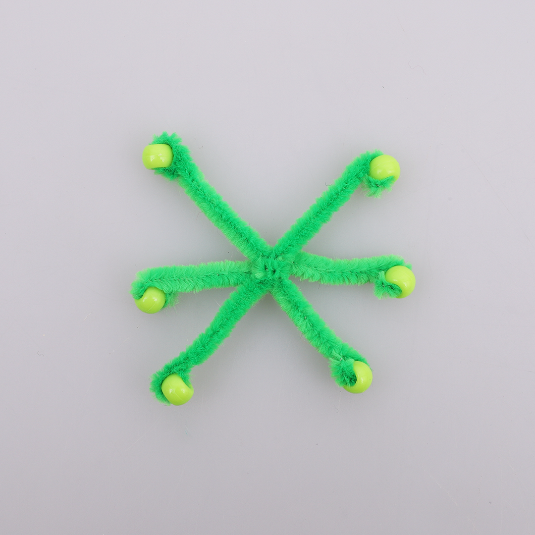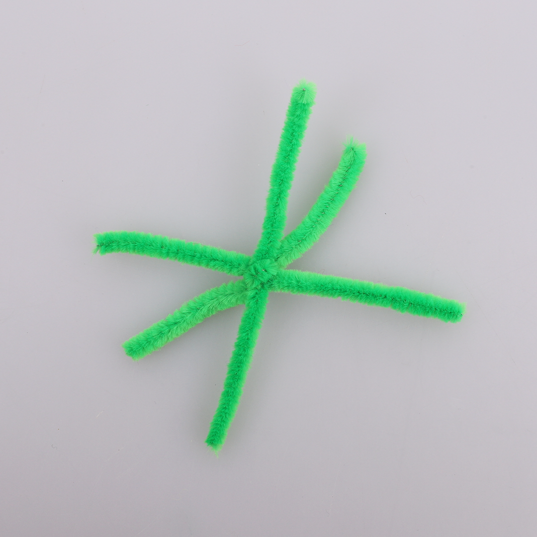 • Step 2Cut a chenille stem into thirds. Adult supervision is recommended when using scissors. Place the three chenille stem pieces over each other so they overlap in the middle, then cross each end of the bottom stem over the top to secure the pieces together.