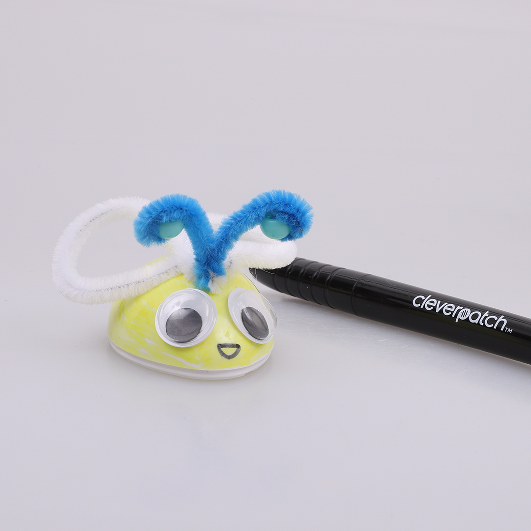 • Step 9Use glue to attach two wiggle eyes to the front of your firefly, then add on a mouth using a permanent marker. Allow to dry.