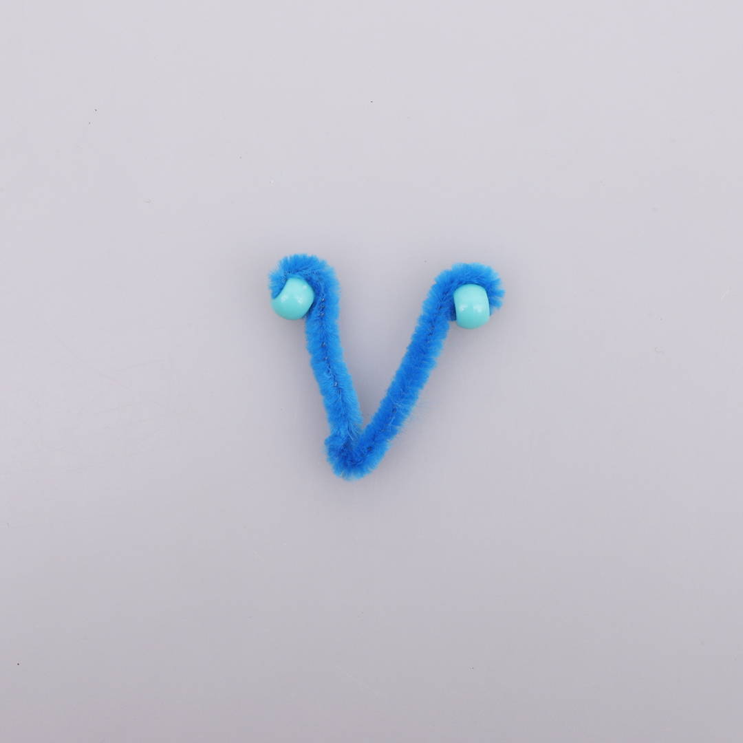 • Step 5Cut an 11cm length of chenille stem and bend it into a ‘v’ shape. Thread a bead onto each end and bend the ends of the stem over to secure them. This will be your firefly’s antennae.