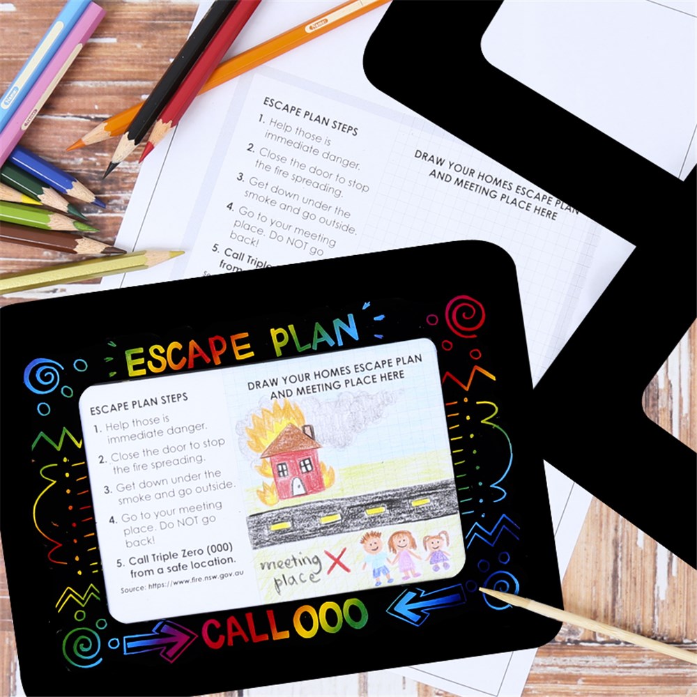 • Step 3On your Scratch magnet frame, scratch out Escape Plan on the top and the emergency services number 000 to remind everyone of the plan.