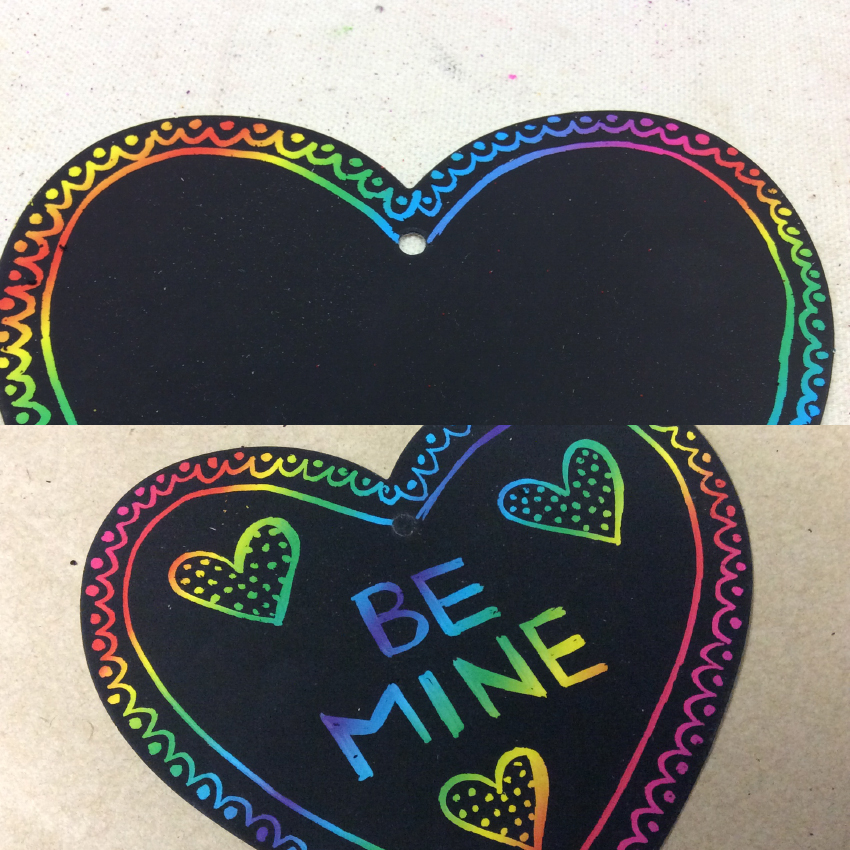 • Step 1Use the scratch board tools to create a design on a heart. Start with a border and then add a nice message to the centre.