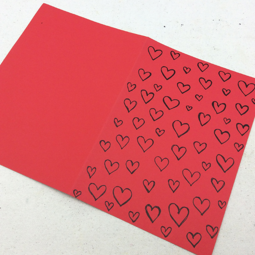 • Step 2Take a sheet of cardboard and fold in half to create the card. Use the permanent pen to cover the front of the card in love hearts.