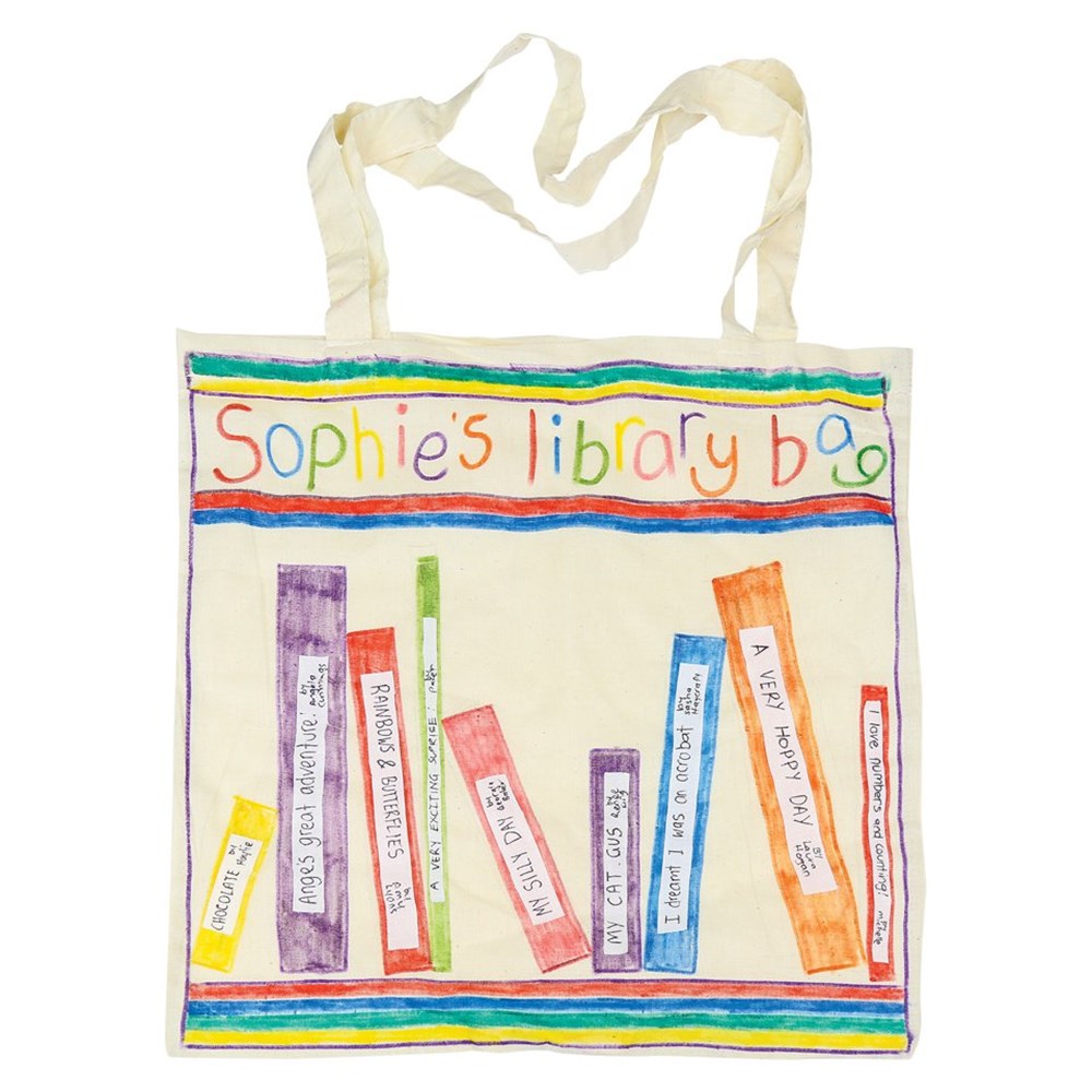 This bag is the perfect size for all of your library books. Decorate with lovely patterns, personalise with your name and never lose your library bag again!