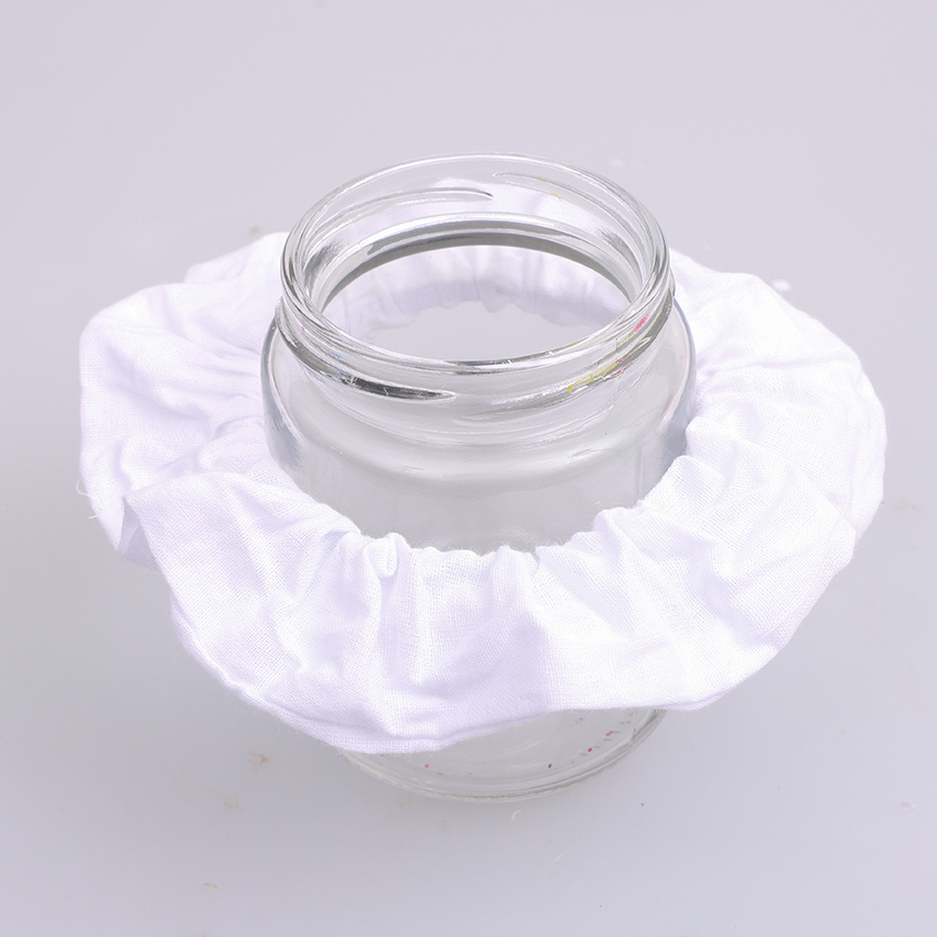 • Step 1Pop a scrunchie over the top of a jar. This will help to spread the fabric out, making for an easier dying process.