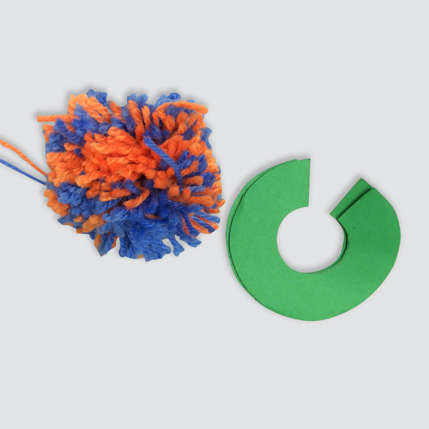 • Step 1Download and print out the template provided. Cut out the Pom Pom template. Adult supervision is recommended when using scissors. Trace the template twice onto thick scrap cardboard and cut out.